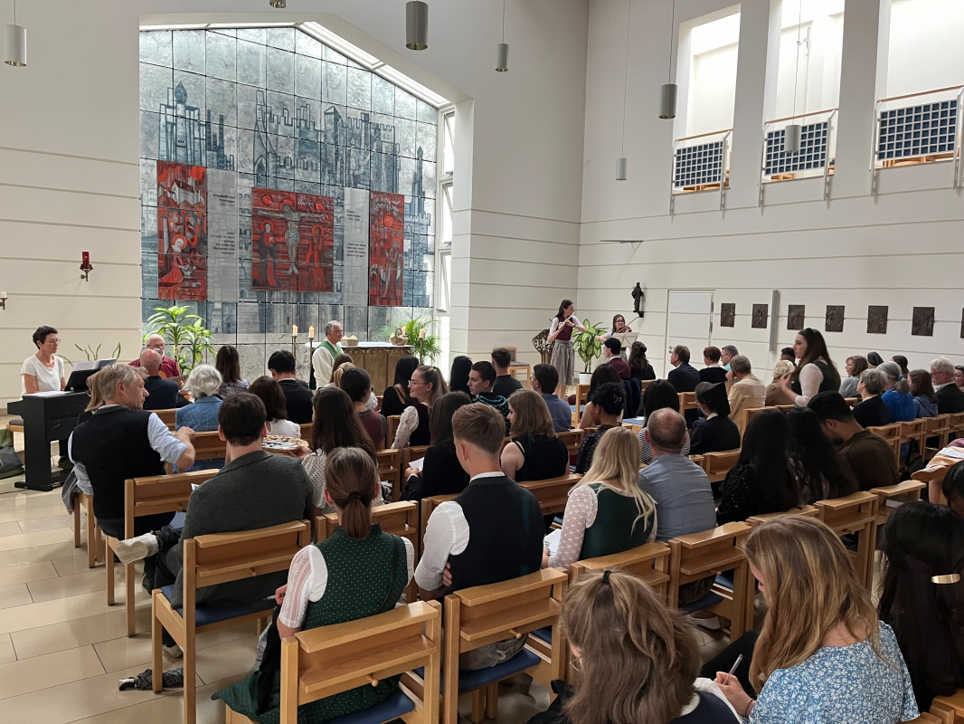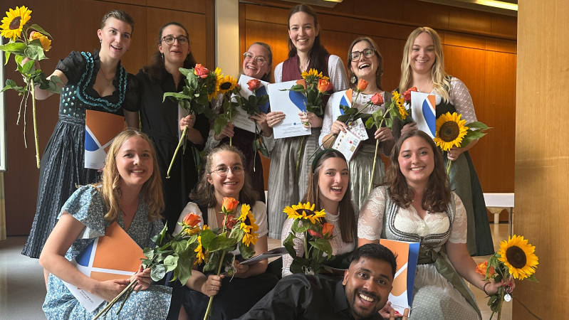 Am 21.08.2025 war es endlich soweit: Unsere Auszubildenden konnten ihre dreijährige Ausbildung in der Generalistik abschließen. Den Auftakt bildete ein feierlicher Abschlussgottesdienst in der Franziskuskapelle. Dort versammelten sich Auszubildende, Angehörige, Lehrkräfte und Praxisvertreter:innen, um diesen besonderen Meilenstein gemeinsam zu begehen. Mit Lesungen, Gebeten und persönlichen Impulsen wurde der Blick zurück auf die Ausbildungszeit und nach vorn auf die berufliche Zukunft gerichtet. Einige Auszubildende bereicherten die Feier mit eigenen Texten, Fürbitten und musikalischen Beiträgen, wodurch der Gottesdienst eine sehr persönliche Note erhielt. Am Ende des Gottesdienstes richteten Sr. Elfriede Retzer, Schulleitung der Pflegeschule am Klinikum Dritter Orden, sowie Hubert Fackler, Seelsorger des Barmherzige Brüder Krankenhauses München, Worte des Dankes und der Ermutigung an die Absolvent:innen. Ihnen und allen Mitwirkenden gilt ein herzlicher Dank für die würdevolle Gestaltung dieser Feier, die das Ende eines wichtigen Lebensabschnitts und den Beginn eines neuen Kapitels markierte.Anschließend ging es zur feierlich gestalteten Zeugnis- überreichung in unserer Kantine. Sr. Elfriede begrüßte die Absolvent:innen und ihre Gäste, darunter unsere Generaloberin Sr. Irmgard Stallhofer, die Geschäftsführerin der Barmherzigen Brüder Nadine Schmid-Pogarell, die stellvertretend für die Geschäftsleitung beider Kliniken anwesend war, die beiden Pflegedienstleitungen – Martina Amerhauser für das Klinikum Dritter Orden, Stefan Hoppe für das Barmherzige Brüder Krankenhaus München – und alle Lehrkräfte und Vertreter:innen der Praxis.